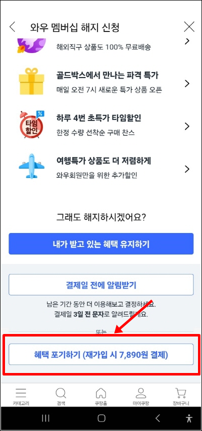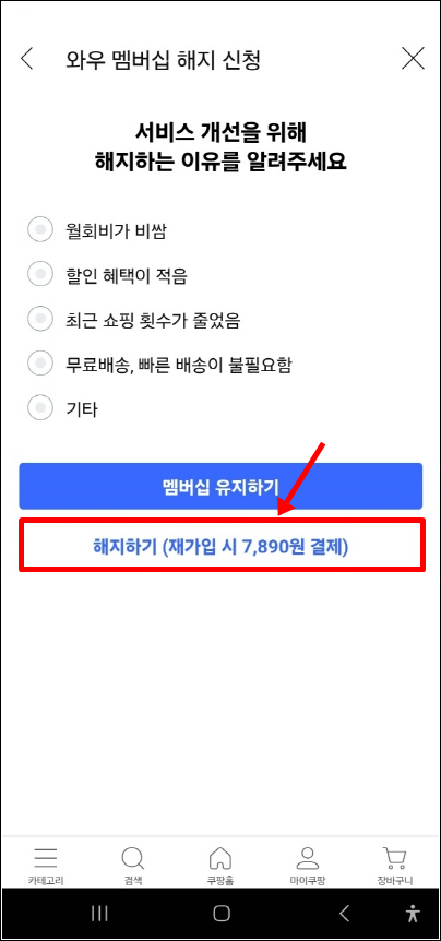 쿠팡 와우 멤버십 해지하기
